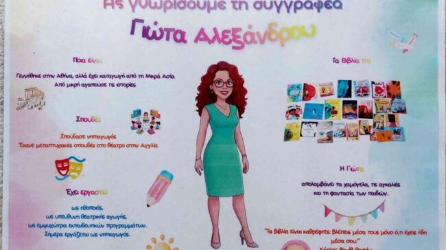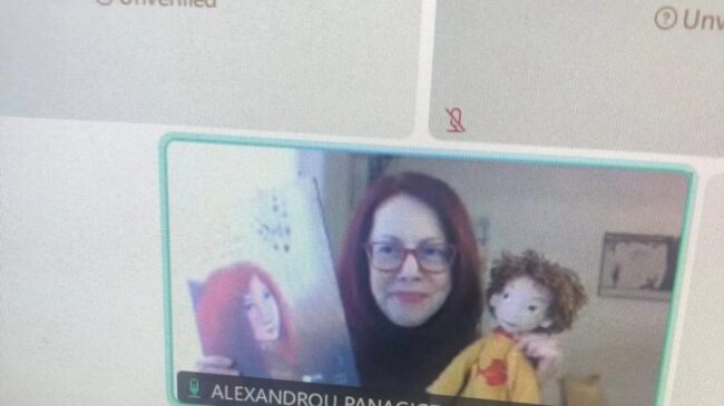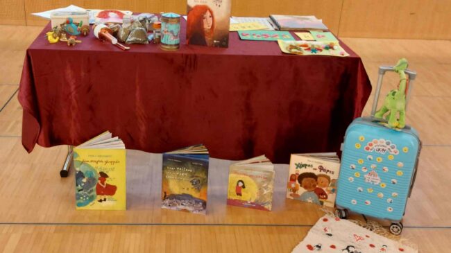 Η Γιώτα Αλεξάνδρου στο 12ο Δημοτικό Σχολείο Ηλιούπολης, με τις δίγλωσσες εικονογραφημένες ιστορίες της