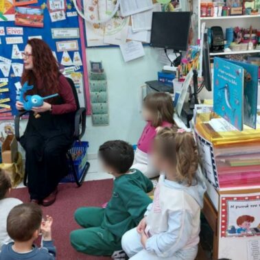 Η συγγραφέας Γιώτα Αλεξάνδρου επισκέφτηκε το 9ο Νηπιαγωγείο Καματερού, με αφορμή το βιβλίο της “Ο Ρομπέν των Θαλασσών και οι Νταήδες του Βυθού”, που κυκλοφορεί από τις εκδόσεις Susaeta, σε εικονογράφηση Βασίλη Γρίβα, στο πλαίσιο των δράσεων κατά του σχολικού εκφοβισμού.