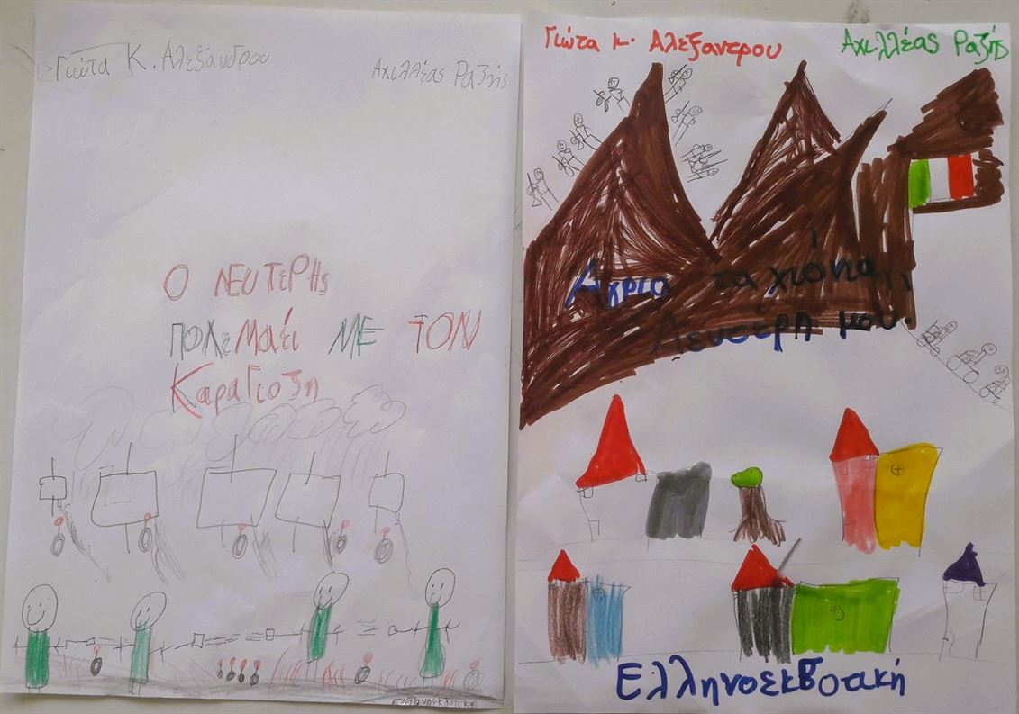 Λέξεις κλειδιά: Ελληνική Ιστορία, Ελληνοϊταλικός πόλεμος, γερμανική Κατοχή, ιστορικός γραμματισμός, υπεράσπιση της ειρήνης, ανθρώπινα δικαιώματα, δημοκρατική συνείδηση, συναδέλφωση και αλληλεγγύη των λαών, κοινωνική ευθύνη, προσωπική ευθύνη, ανθρωπιστικές αξίες, αντίσταση μέσω της τέχνης, καλλιτέχνες στον πόλεμο, θέατρο σκιών.